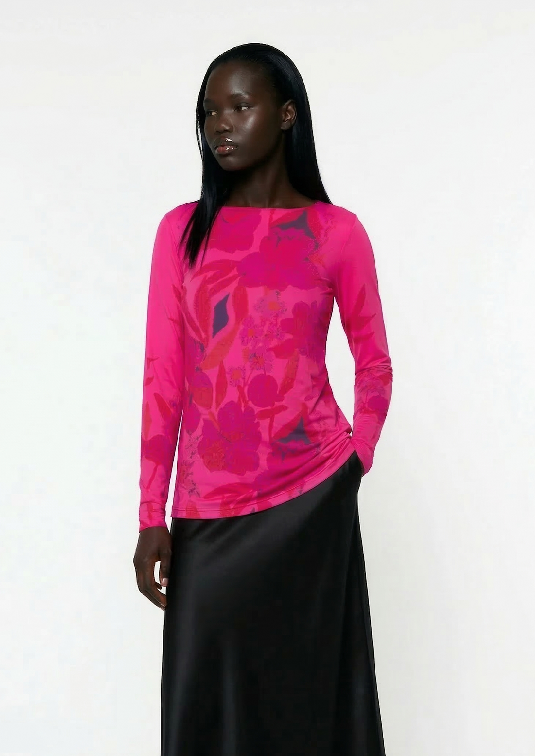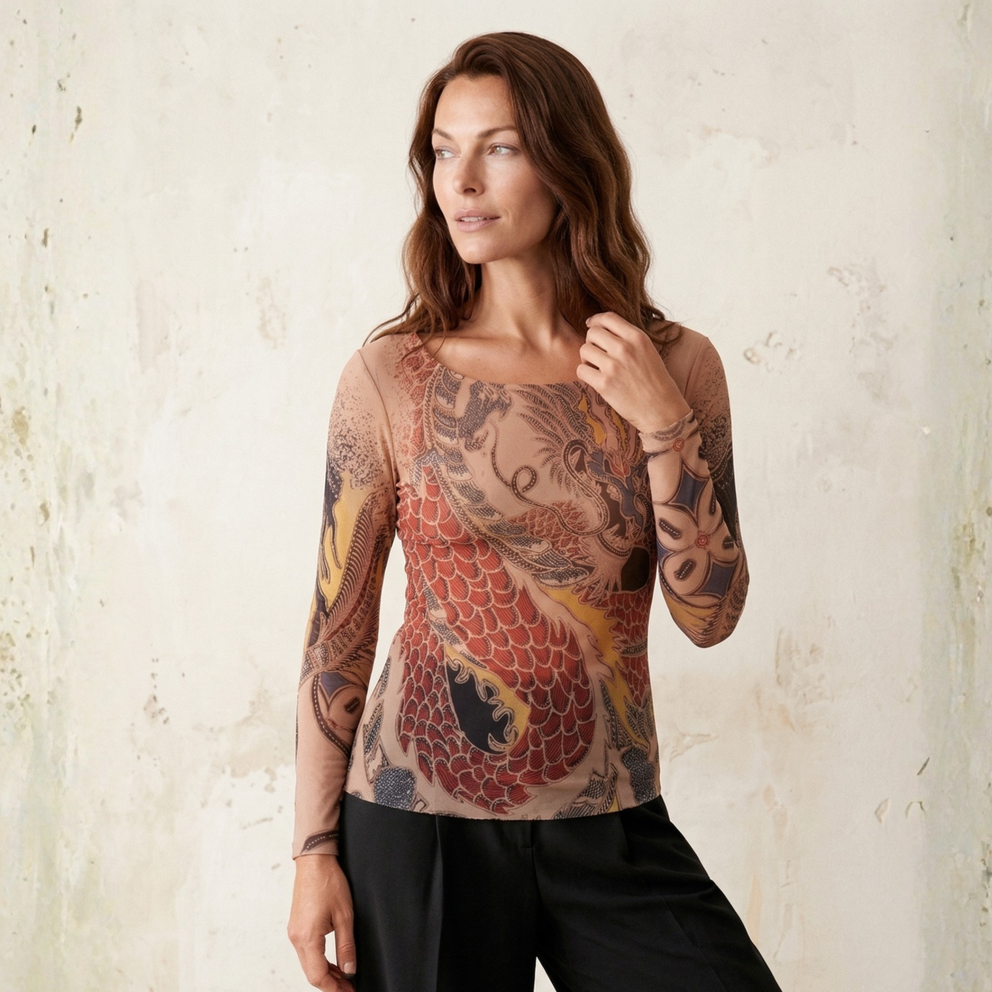 Love the second skin raw edge tops. I’ve got several of the crew neck style in solid colors. They are soft, lightweight, versatile, comfortable, great for layering and packing, and surprisingly resistant to runs and snags. You can dress them up or down, the colors are beautiful and the level of sheerness is appropriate for most occasions. My only suggestion for improvement would be to make the sleeves an inch longer. Please consider making raw edge mock neck & folded-edge turtleneck versions.