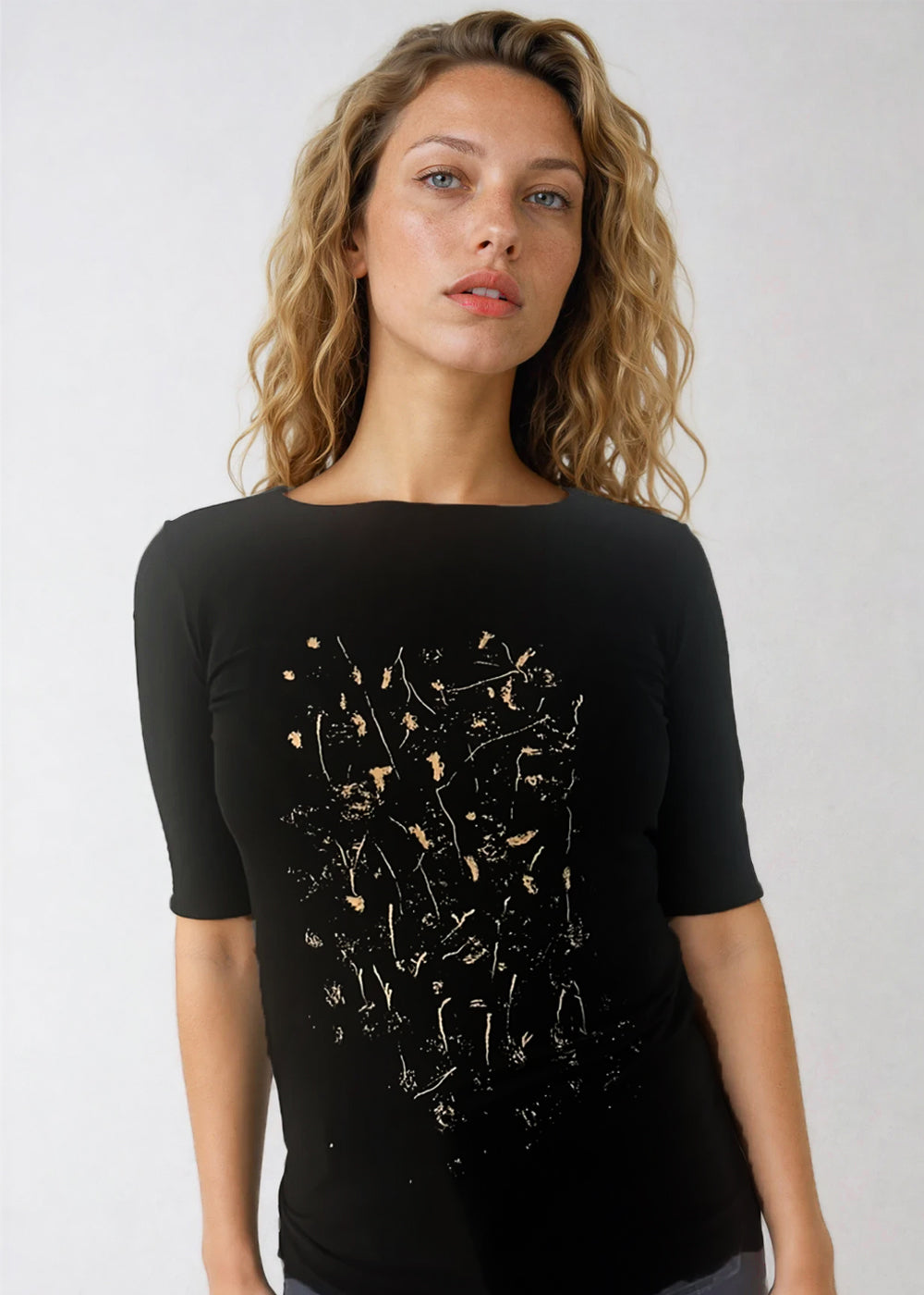 My favorite aspect of the Hidden Marble Second Skin shirt from AMB is the silky smoothness of the fabric. Having purchased many other shirts before I know the shirt is also strong, can be washed many many times without losing the brilliant color and design, and that it dries in hours keeping its shape easily without ultra-delicate handling. I highly recommend this gem.