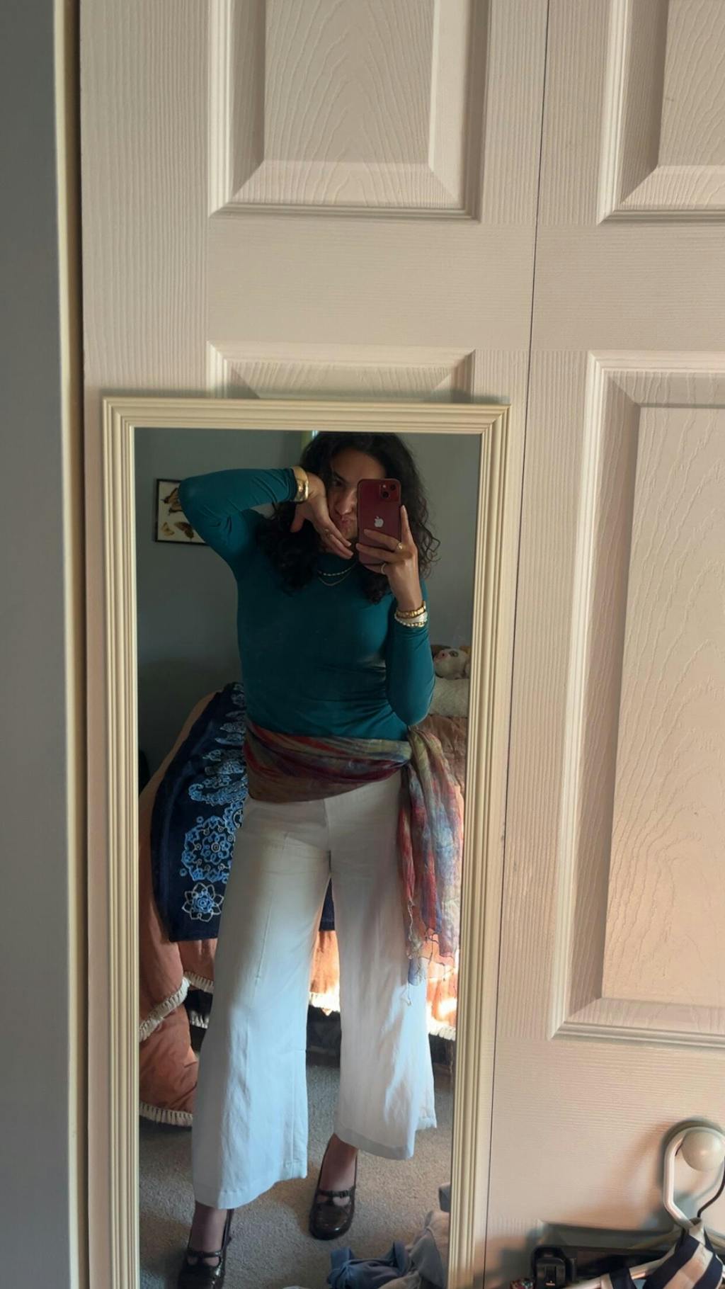 I have been a loyal customer of yours for many years. I have at least 30 of your second skins. This teal top is just perfect. I now have all my favorite colors and this pattern is lovely!
